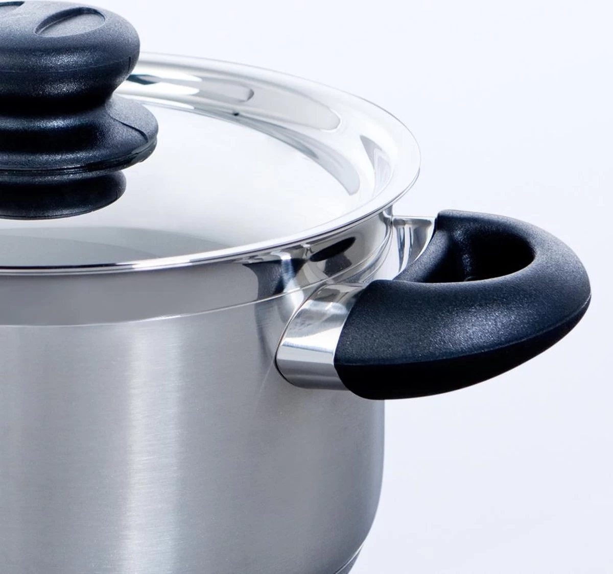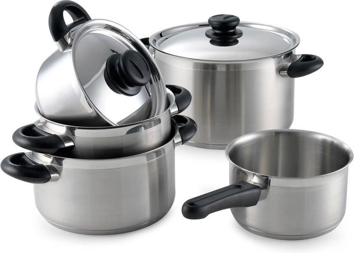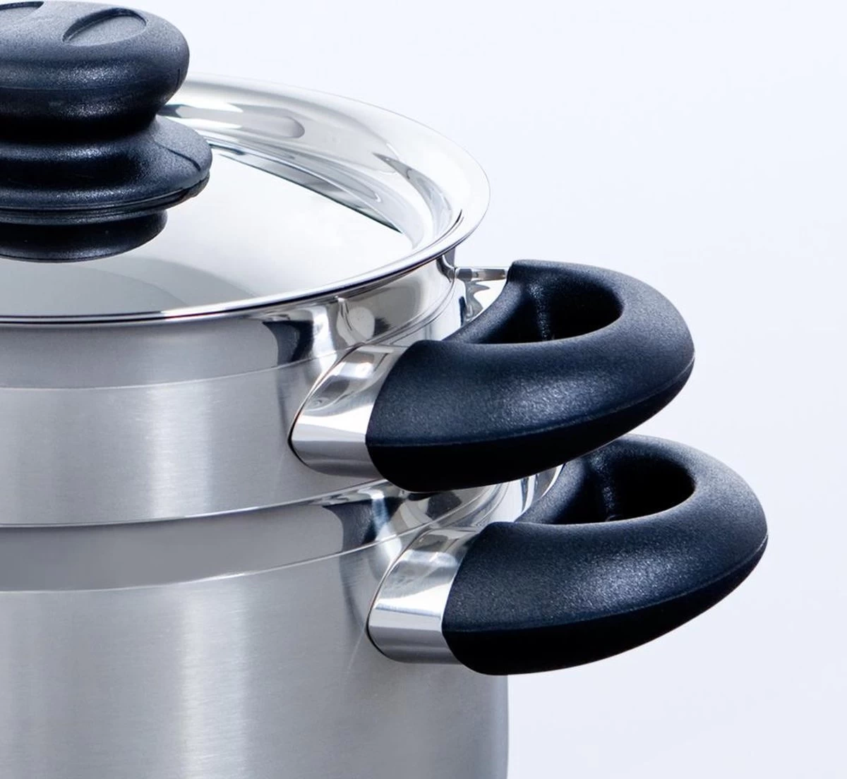 Ruimtebesparend doordat de pannen gemakkelijk in elkaar passen