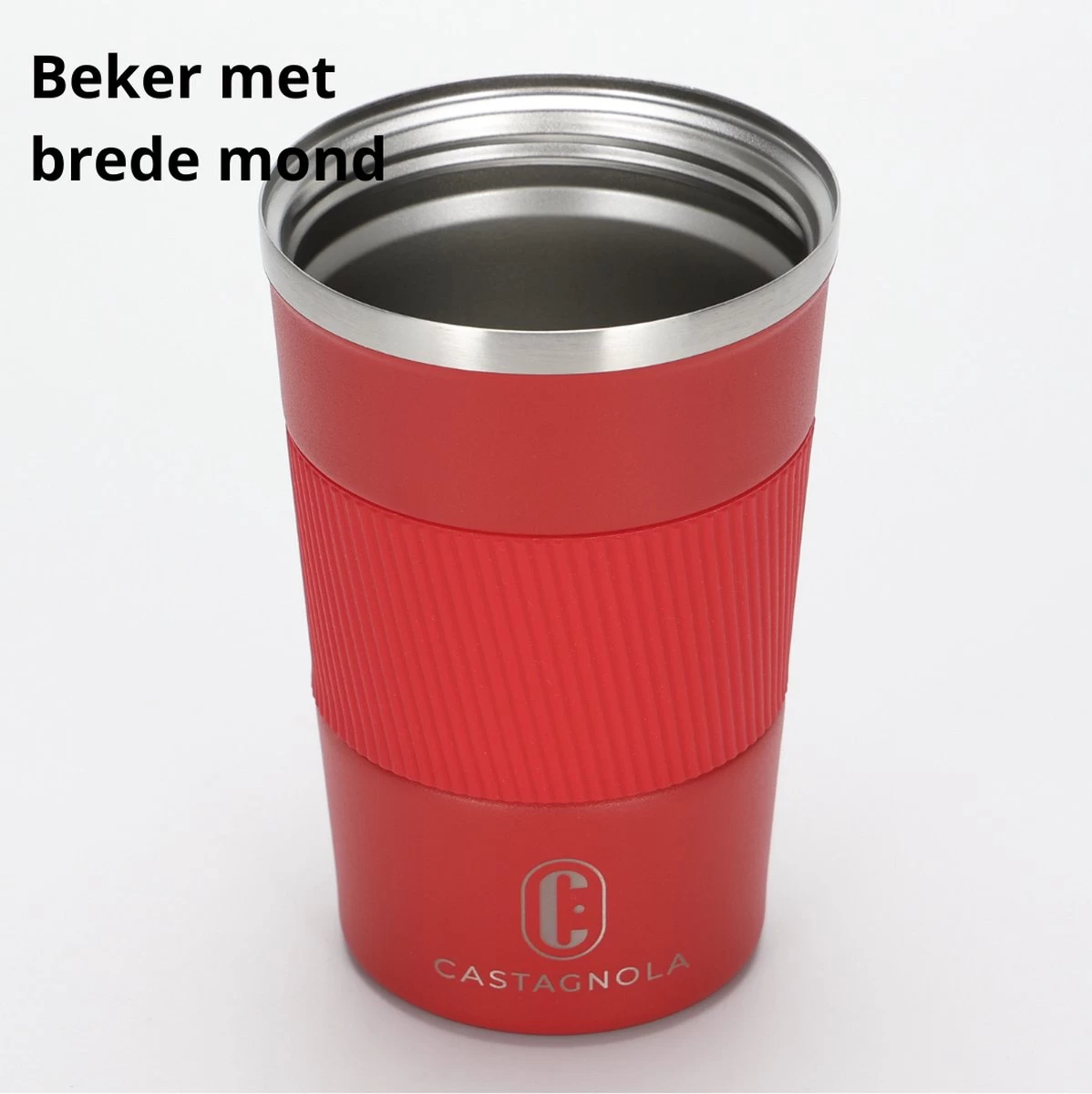 Castagnola Design RVS Koffiebeker To Go – Rood – 380ml – Thermosbeker – Theebeker