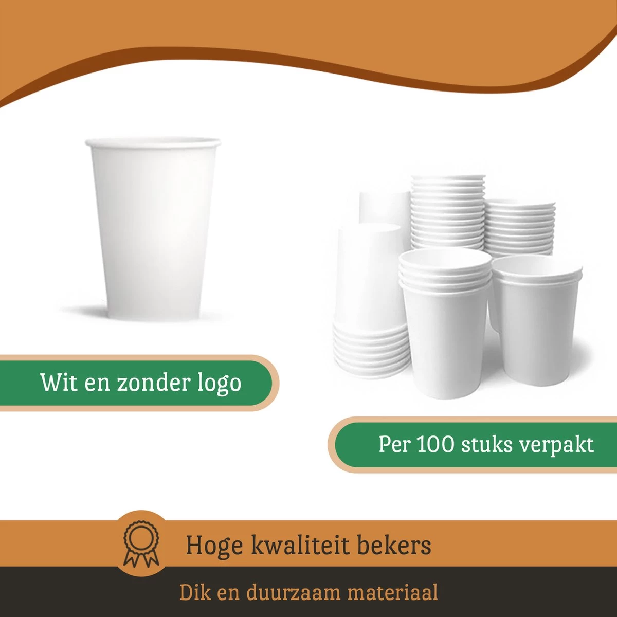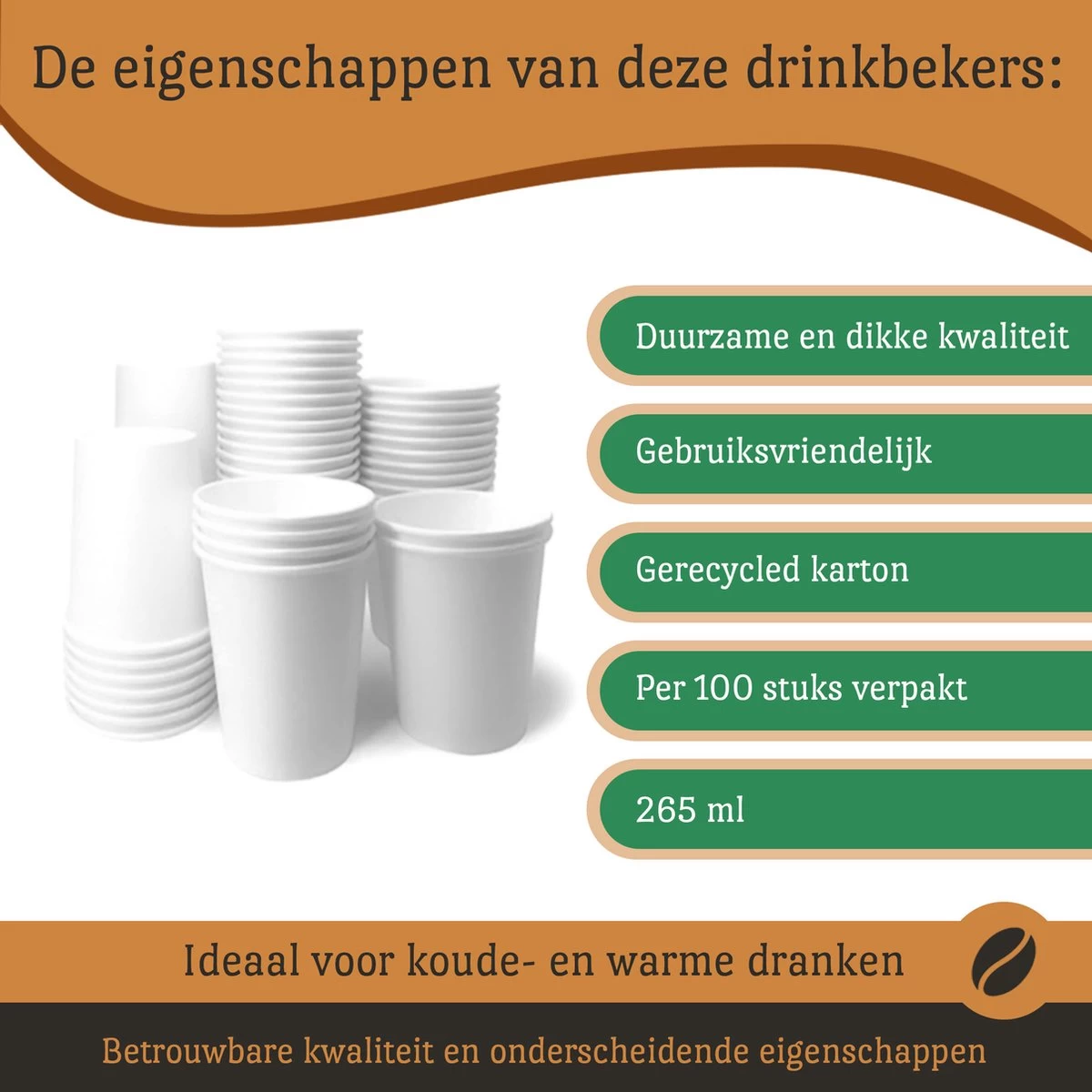 Drinkbeker Wit – Koffiebeker – Kartonnen Beker – 265ml – 100 Stuks – Wegwerpbeker – Papieren Beker – To-Go