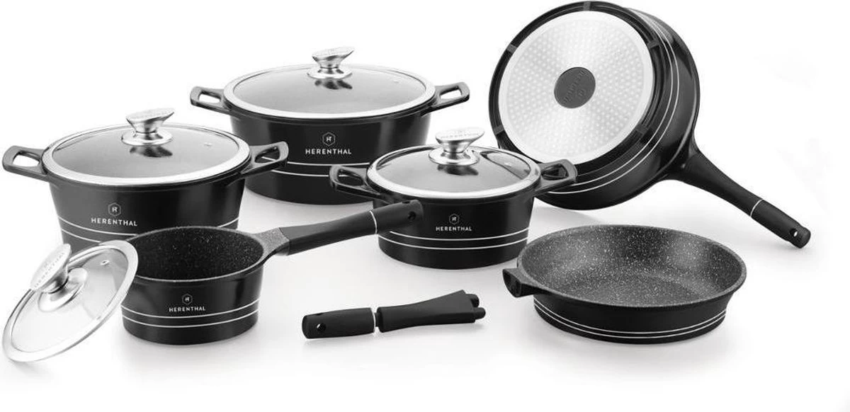 Heb je een nieuwe keuken? Of ben je gewoon toe aan nieuwe pannen? Zoek niet verder, want deze Herenthal pannenset biedt alles wat je nodig hebt. Geen gedoe meer met maten en verschillende soort pannen. De Herenthal pannen zijn namelijk goed op elkaar afgestemd en zijn voorzien van een bijpassende glazen deksel.