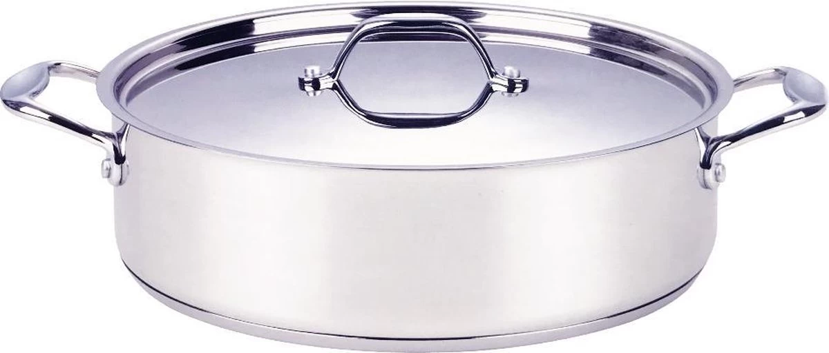 Merkloos Lage Kookpan RVS Braadpan – Voor Alle Warmtebronnen, Ook Inductie – 9L