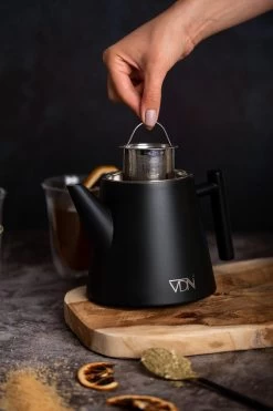 VDN RVS Theepot Dubbelwandig Met Filter – Zwarte Theekan 1 Liter – 902