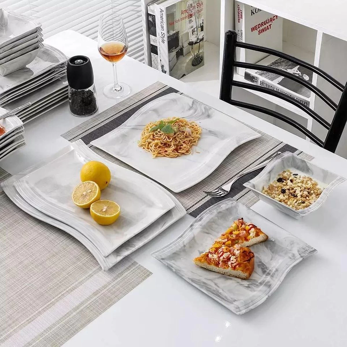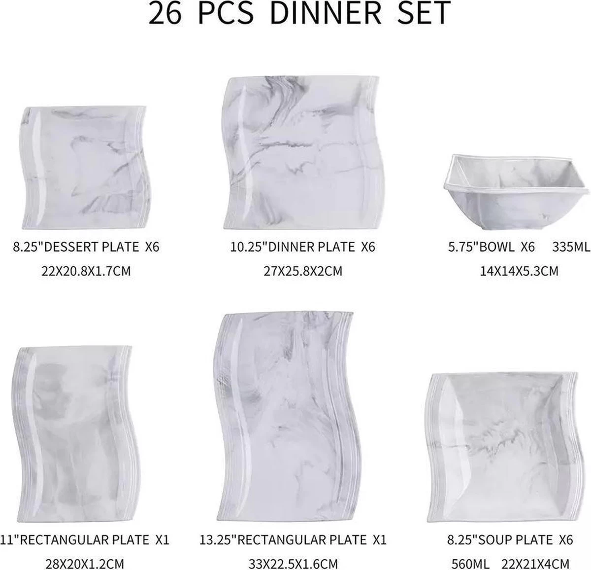 Met deze prachtige serviesset in in marmer tinten geef je een extra luxe uitstraling aan je dinertafel.
