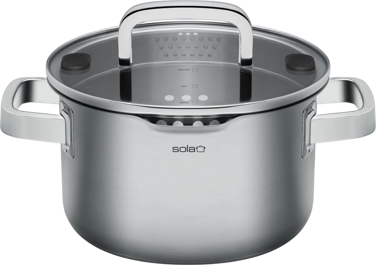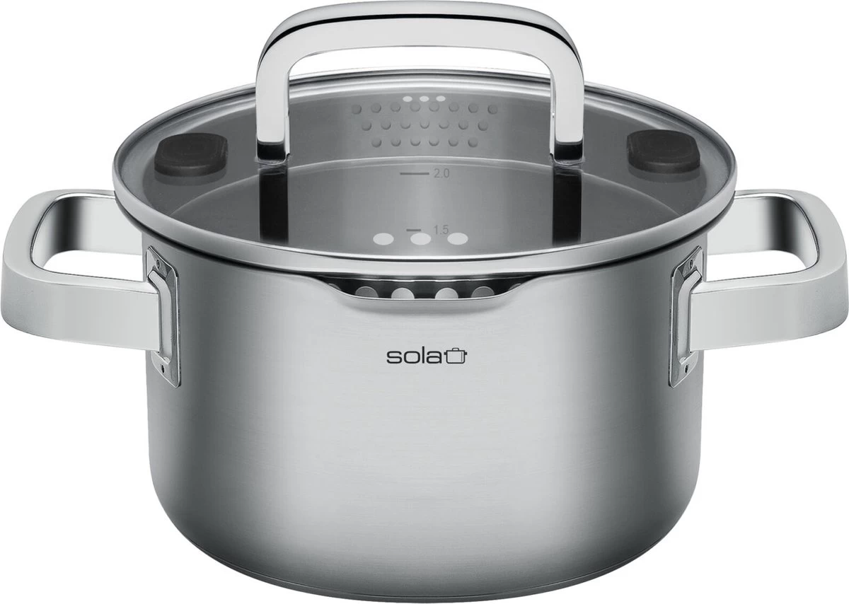 Sola Pannenset Juvia – 4 Delig – Ø 16,16,18,20 Cm – Zilver – RVS – Sandwichbodem
