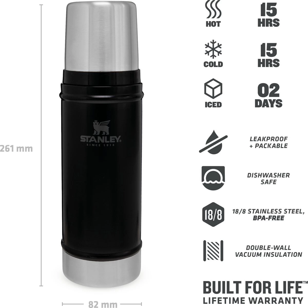 Stanley Classic Legendary Bottle 0.47L / 16OZ Matte Black – Thermosfles houdt 15 uur warm of koud | Levenslange garantie | Vaatwasserbestendig | Roestvrijstalen Thermoskan | Lekvrij | BPA-vrij