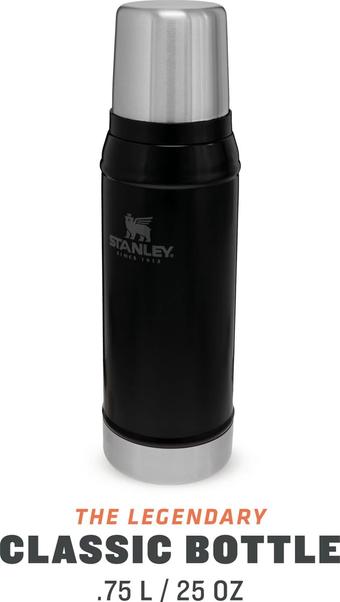 Stanley Classic Legendary Bottle 0.75L / 25OZ Matte Black – Thermosfles houdt 20 uur warm of koud | Levenslange garantie | Vaatwasserbestendig | Roestvrijstalen Thermoskan | Lekvrij | BPA-vrij
