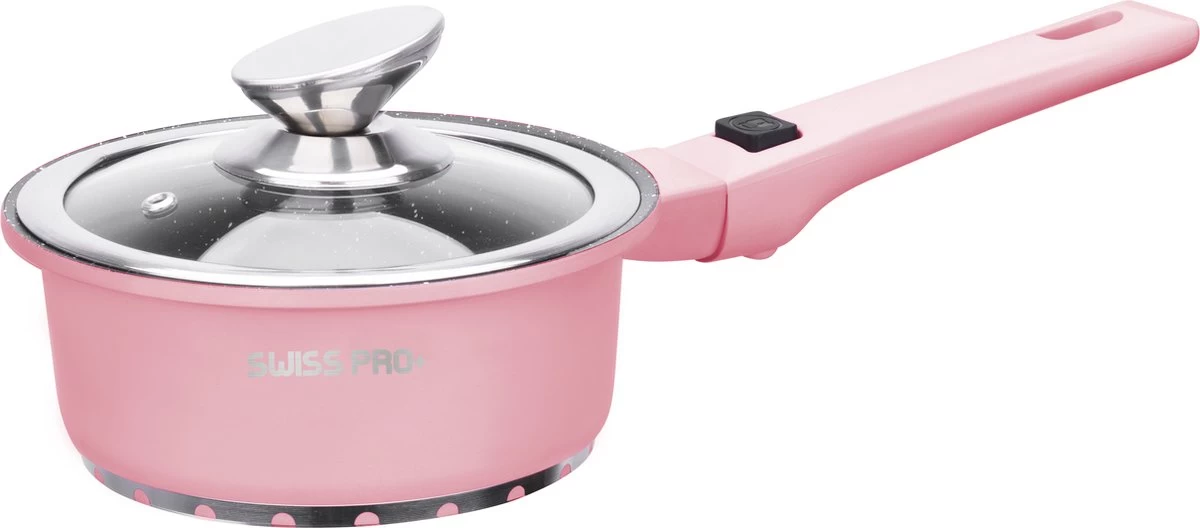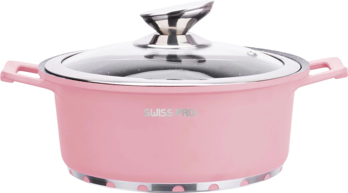 Swiss Pro+ | Set 14 Delige Pannenset | Inductie – Pannensets – Glazen deksel – Met afneembare handgreep – Marmeren interieur -PFAS-vrij | Pink