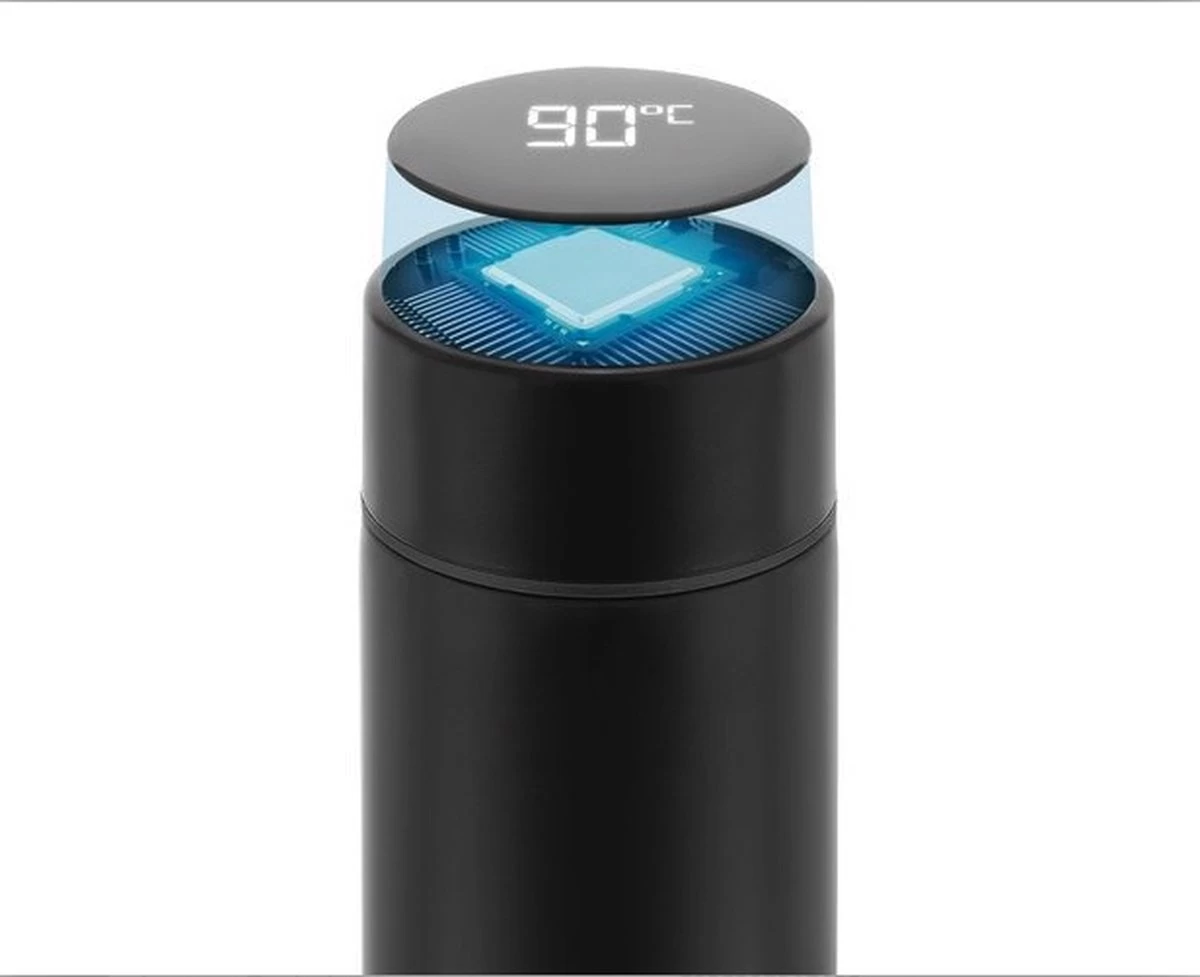 YUNICS® Thermoskan – Met Smart Temperatuur Display – Thermos – Thermosfles – Thermosbeker – Thermofles – Isoleerfles – Travel Mug – RVS – Zwart